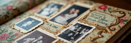 Vintage photo album with family memories and floral design. That the image is generated using AI.