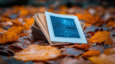 Generative AI Image of Photo Paper with Maple Leaves in the Forest in Autumn