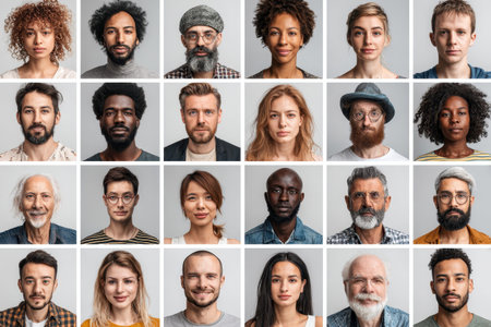 Diverse collection of happy faces celebrating multiethnic lifestyle