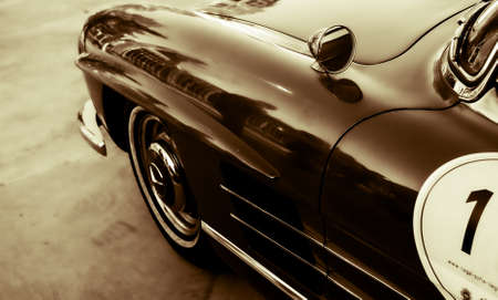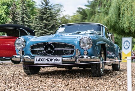 Vintage Mercedes Benz SL 300 roadster. Retro Car. Front lateral view.