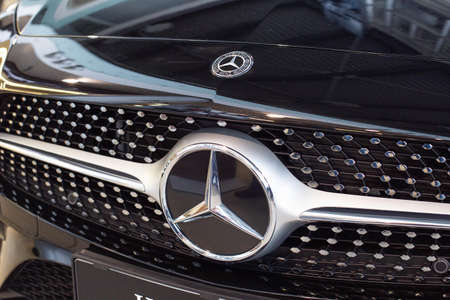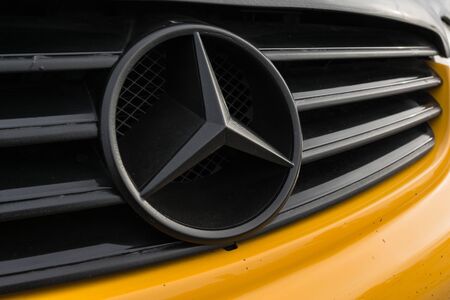 Mercedes Benz close-up of car with logo. Russia, Saint-Petersburg. 14 may 2020