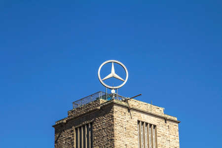 Nurnberg, GERMANY : Mercedes Benz logo close up on a dealer building. Mercedes-Benz is a German automobile manufacturer. The brand is used for luxury automobiles, buses, coaches and trucks.