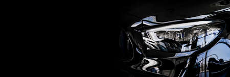 banner. car headlight on a black background. dealer center.
