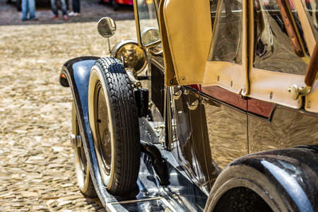 classic old retro car used in the film industry, close-up