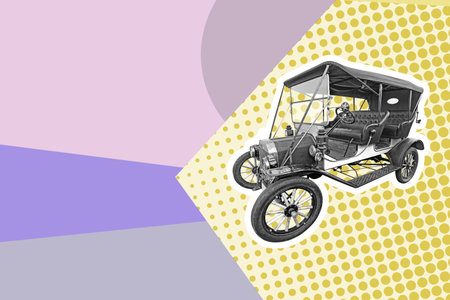 black retro car on abstract geometric background