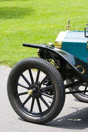 Partial front view (wheel and wing) of a vintage car
