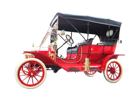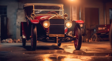 Front part of a reconstructed old style car in red color