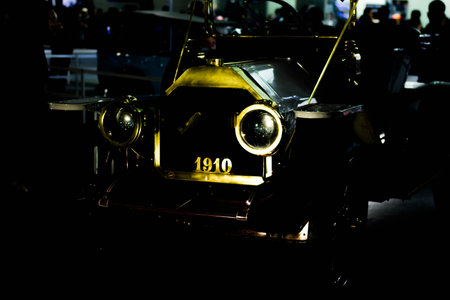 Restored early 1900s open top touring car in modern museum display
