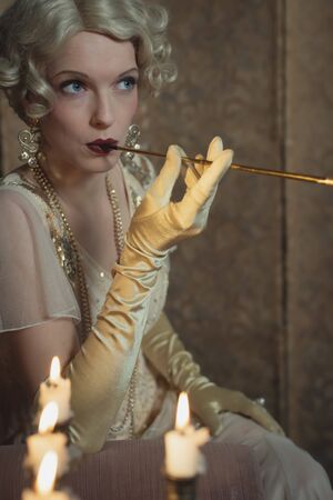 Beautiful girl in the image of the 1920s with a cigarette