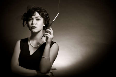 Vintage retro portrait of a woman costumed in 1920s style