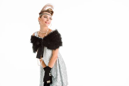 cheerful aristocratic girl smiling isolated on white
