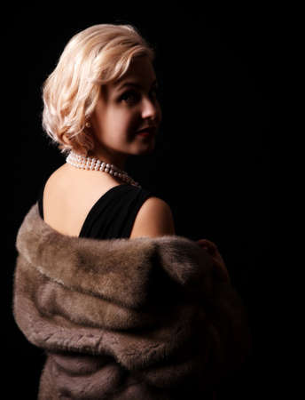 young luxury woman in retro vintage style on black background