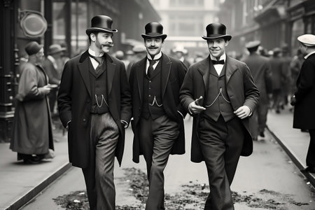 Rich English men walking on street, 1890th, vintage photo Generative AI