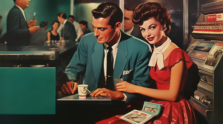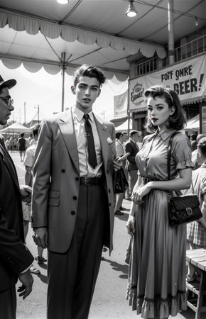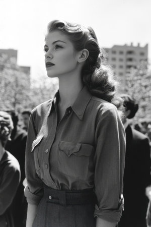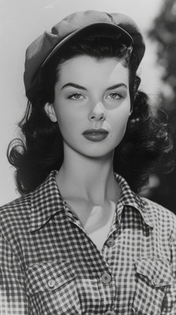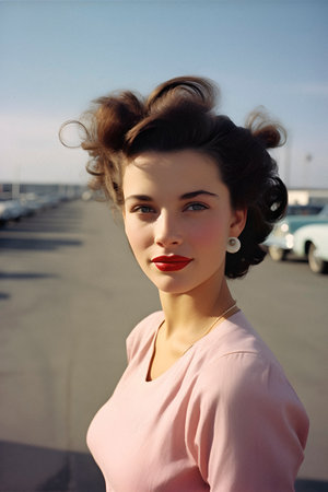 Nostalgic portrait from the 1950s: capturing the essence of a bygone era, evoking the charm and elegance of mid-century aesthetics in a timeless visual depiction.