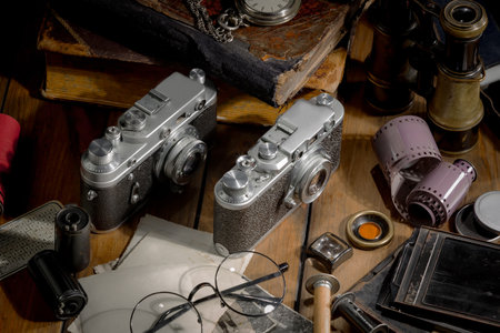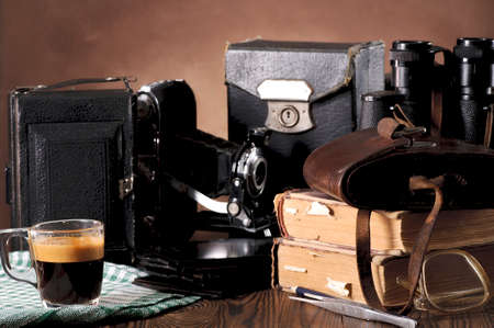 Instruments employee news agency the mid-twentieth century, retro camera and typewriter