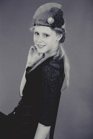 Young beautiful woman with cigarette in mouthpiece in hat with veil