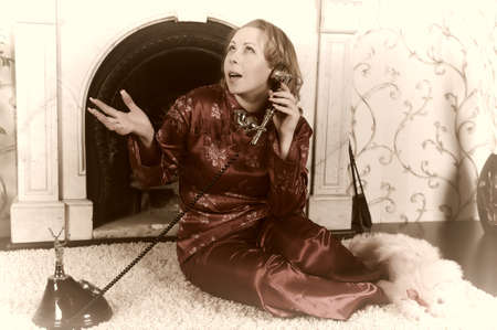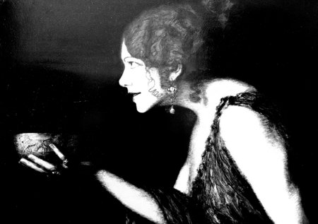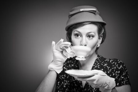 young luxury woman in retro vintage style on black background looking at camera, monochrome