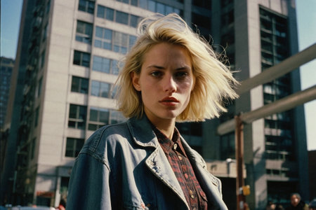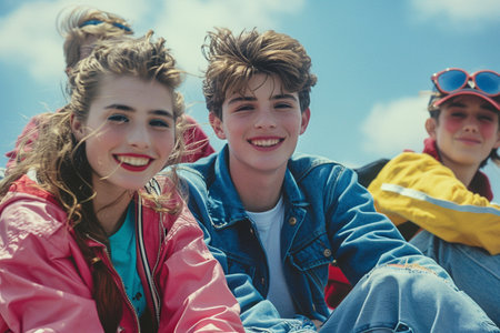 Generative AI, teen portrait in style 90s or 80s, retro fashion, vintage colors