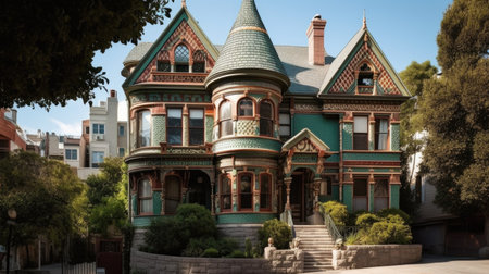 front door framed by intricate corbels of an italianate mansion, created with generative ai