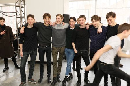 NEW YORK, NY - FEBRUARY 12: Models posing backstage at the Duckie Brown Fashion Show during Mercedes-Benz Fashion Week Fall 2015 at Industria Superstudio on February 12, 2015 in NYC