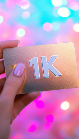 Celebratory Symbol of Achievement Hand Holding One Thousand Milestone in Minimalist Design Style