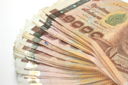 Thai money currency as background, Various of Thai currency banknotes isolated on white background use for background or saving money concept.
