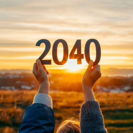 A Vibrant Sunset Landscape Symbolizing an Optimistic Vision for a Brighter Future in 2040
