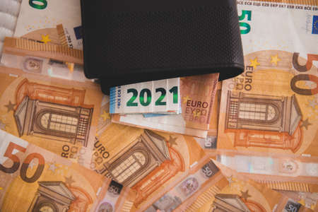 put euro banknotes of the European Union on black paper, put euros on black paper