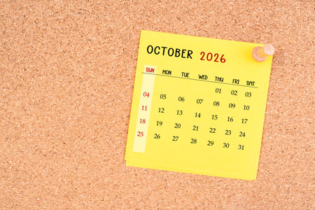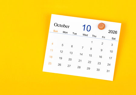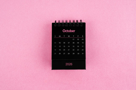 Black mini calendar for October 2026 on multi background.