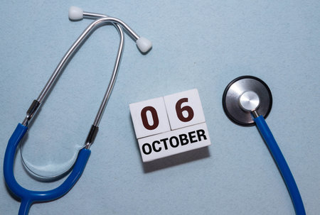 October 6 calendar date text on blocks with copy space for ideas or text.