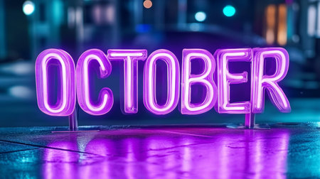 October in Neon Lights A Vibrant and Festive Sign for Autumn and Halloween Celebrations