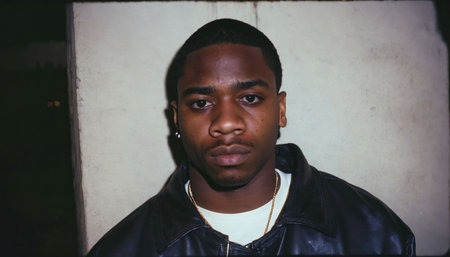 photo of angry black person man in neighborhood at night ,generative AI