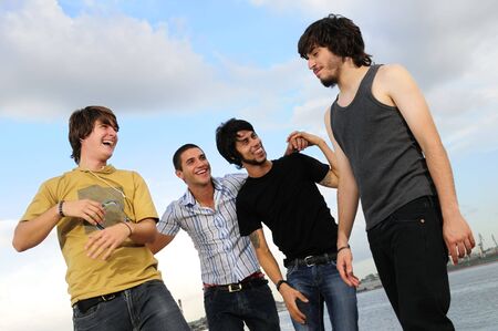 Portrait of young happy group of friends posing outdoors