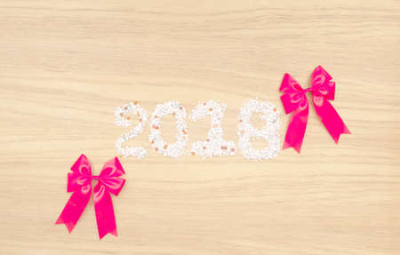 Happy New Year 2018. Numbers forming the number 2018, For the new year 2018 on rustic wooden table.