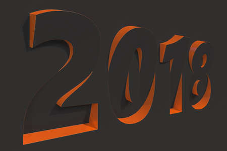 2018 number bas-relief on black surface with orange sides. 2018 new year sign. 3D rendering illustration