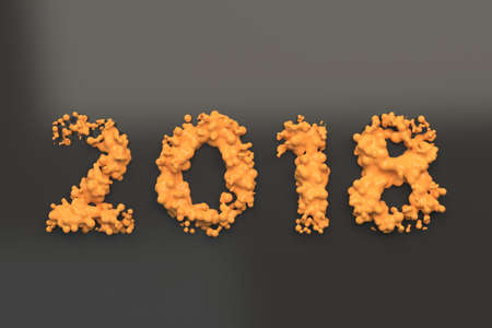 Liquid orange 2018 number with drops on black background. 2018 new year sign. 3D rendering illustration