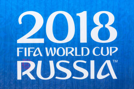 Moscow, Russia - May, 2018: FIFA World cup 2018 banner sign. Russia is World cup 2018 host country