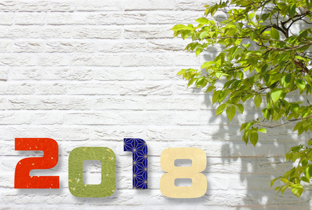 White wall green tree 2018 new year card