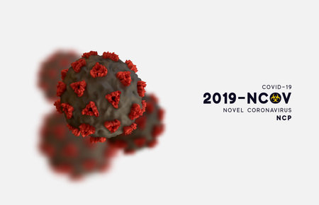 Novel Coronavirus (2019-nCoV). Virus Covid 19-NCP. Coronavirus nCoV denoted is single-stranded RNA virus. Background with realistic 3d black and red viruses cells. SARS-CoV2. vector illustration.