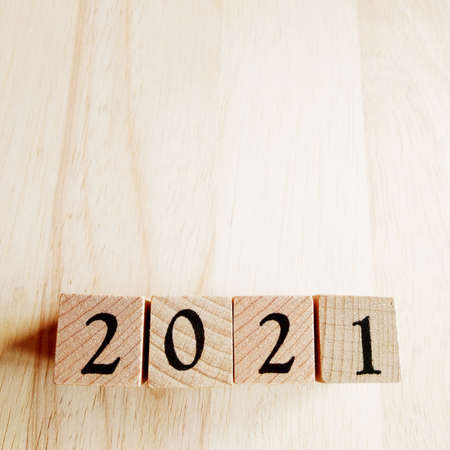 2021 on the wooden cube. Happy New Year 2021