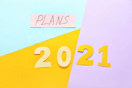 Concept of the year 2021. 2021 numbers on paper background, view from above