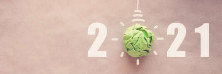 2021 Green paper light bulb, New year eco and sustainable resolution concept
