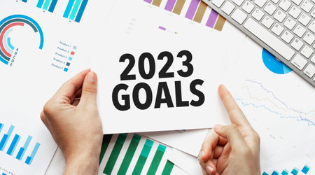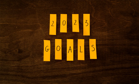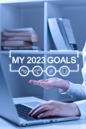 Text caption presenting Goals 2023. Word Written on identifying something you want to accomplish