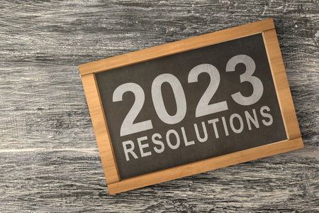 2023 resolution message on the little blackboard. Resolution of 2023. Happy New Year 2023