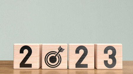 2023 year with target board for setup business objective target and goal for new year concept by 3d render illustration.