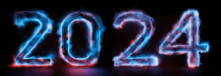 Neon numbers 2024 on a black background symbolize the new year