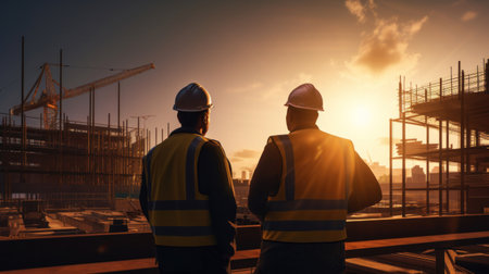Ensuring Safety Construction Site with Dedicated Workers and Protective Gear AI Generated.