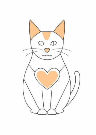 Minimalist Cute Cat With Love Heart on white background