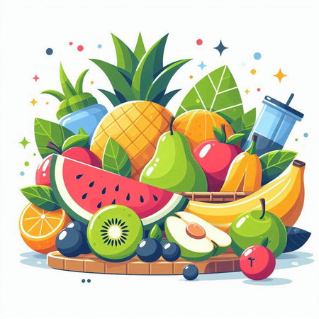 Fruits and berries vector illustration. Healthy food concept. Fruit mix.