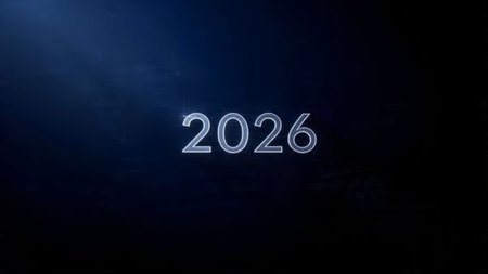 Embossed 2026 on dark texture; subtle light, deep shadows; elegant, minimalist design